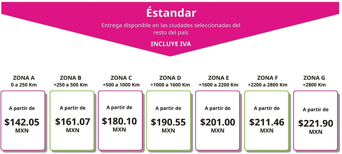 - EI costo del envío se calcula de acuerdo a su peso, medidas y destino.